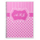 This monogrammed fuchsia pink, soft pink, and white stripes and polka dots notebook has a template box for you to add your name, monogram, or other text. If you need help customising this item, please email niteowlstudio@gmail.com for assistance.
