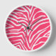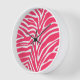 Pink White and BlackZebra White Dots Custom Wall Clock - Your Name - or change to read whatever you like. You Choose Background colour - pink changes to any colour. To change colour click customise then edit and use the last tool on the drop down menu to choose from the colour swatches or enter your RGB code for a one of a kind designer clock! A single animal print accessory will create an instant focal point. This zebra stripe clock will draw the focus to the centre of the wall and contrast any neutral colour pallet and anchor the room's design.