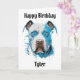 Personalised white Pitbull with blue eyes Happy Birthday card full of dog puns.