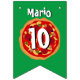 Personalised pizza Birthday party bunting flags. Personalise with your own name and age. Fun design for kid's celebration. Big round pizza illustration with pepperoni, olives, tomato, cheese and mushrooms. Italian food design for pizza lovers. Customisable Italian flag colours.