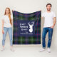 Cute home sweet home Christmas blanket you can easily customise by clicking the "Personalise" button, Featuring deer silhouette and clan Sutherland tartan in green and purple chequered design.