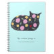 Unique painting of a black cat laying, decorated with flowers and plants that are listed as safe for cats to eat, with the statement, This notebook belongs to, are printed on custom notebooks. The plants depicted include Gerber daisy, nasturtium, cereal grass, and catnip. The text can be customised. Thank you for shopping CherylsArt on Zazzle.