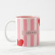 Personalised Playful Red Heart & Pink Stripe Two-Tone Coffee Mug