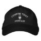 Custom podcast name embroidered hat in black or your colour choice with a microphone design. Personalise this cap by adding your own text. Ideal to give away to the guests and as branded promotional products.