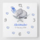 This beautiful poetic nursery baby blue wall clock invites you to dream together with the cute balloon baby elephant, Name and birth date can be easily customised to your needs. An original design available exclusively at ©EleSil online store.