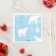 Personalised Christmas paper napkins featuring cute polar bears with falling snowflakes on an ice blue background with the family name and year in a classic white font. Perfect for Christmas get-togethers and parties!
