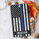 Thin Blue Line Keychain - American flag in Police Flag colours, distressed design . Personalise with police officers name, family name or department . This personalised police keychain is perfect for police and law enforcement departments, families and all those who support them . COPYRIGHT © 2020 Judy Burrows, Black Dog Art - All Rights Reserved. Personalised Police Officer Thin Blue Line Keychain