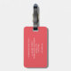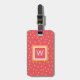 Chic personalised luggage tag featuring elegant a raspberry coloured background with peach polka dots with a bold square initial monogram that you can personalise. The reverse has a matching raspberry background with classic white text for your contact details.