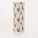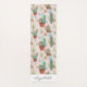 This yoga mat features a pattern of potted cactus and succulent plants on a blush pink background. Personalise it with your name in elegant cursive script font.