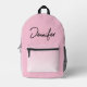 Make a statement with our Personalised Powder Pink Backpack. Coloured in gentle shades of powder pink, this backpack is not just an accessory; it's a fashion statement. Personalise it with a custom name printed in an elegant cursive script across the front, adding a touch of sophistication to your everyday carry. Easy to customise by simply editing the sample name "Jennifer" and replacing it with the name that makes it uniquely yours.