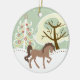This Christmas ornament features a pretty brown horse in a snowy holiday winter forest. It can be personalised with a name and date. ~