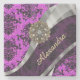 Pretty bright purple or magenta and black personalised feminine girly vintage damask pattern and modern silver pewter grey colour swirl design with monogram name or text initial templates and faux diamond crystal rhinestone antique jewel graphic. Easily create your own unique colourful personal custom monogrammed chic elegant tradition design product for her. PLEASE NOTE the silver grey colour is not metallic or the gemstones real.