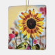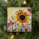 Pretty Yellow Sunflower in Colourful Field of Flowers Digital Art Holiday Christmas Tree Ceramic Ornament - Personalise the back with a name and year or any text that you wish to add.