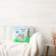 Adorable hand drawn blonde haired princess and a unicorn friend, with pretty rainbow background throw pillow for a little girl's room.