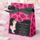 Baby Shower favours boxes. Personalised custom vintage Princess Ballerina baby shower hot pink and black thank you party favour box for baby showers for girls. Elegant, classy vintage princess favour box for baby showers with a cool, funky, hot pink leopard / cheetah animal spots pattern box and beautiful vintage illustration of a cute and adorable baby girl with stylish pink Princess crown, a pretty pink tutu and ballet slipper, and a pink bow in her hair. There is also a big Princess illustration on the back of the box. With personalisable, fully customisable text. A little princess is on her way! Thank you for sharing in my day. Name of mummy to be and date. Chic, modern, trendy, glamourous, girly, fun, fashionable personalised boxes for your guests' shower favours for girl baby showers. If you need any assistance customising your product please contact me through my store and I will be happy to help. I have matching products in my store.