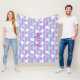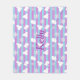 Pretty Christmas fleece blanket with purple and blue stripes, white snowflakes, winter hates and mittens. Just add your name in the personalise area. Pretty Christmas or holiday gift.