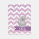 A cute grey cat and purple chevron pattern is featured on this soft fleece blanket. Some graphics by www.jwillustrations.com