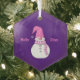 Customise this winter snowman wearing purple accessories Christmas holiday ornament with any name and year.
