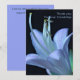 The artwork is of an ornate, macro photograph of a Hosta flower. It features the delicacy and elegance of the flower's petals and central parts (stamen and pistil) in beautiful shades of pastel blue and purple colours against a black background - presented in a sophisticated framed design. The flower is reported to symbolise friendship and devotion in certain cultures.