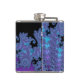 Personalised Purple Fractal Monogram Flask. Shades of purple, blue, green and lavender in an asymmetrical fractal pattern with a name and initial at the centre ready for you to customise. Share the festive spirits with your favourite people with this elegant, decorative flask.