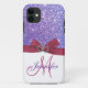 Personalised Purple Glitter, Pink Printed Bow Case-Mate iPhone Case