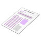 This large notepad features a modern daily planner design in purple and grey shades on white background. Customise it with your name, date, and blank templates for daily goals, to do list, notes, and motivational quotes. You can edit the text, font styles, and colours by clicking on Personalise and then Edit in Design tool. Use this planner to stay organised and focused, increase productivity, and complete your daily goals. Great for students, stay-at-home parents, and small business owners.