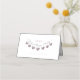 Personalised baby shower placecards with elegant purple and pearl heart bunting.