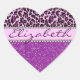 Personalised Purple Leopard Print Glitter Heart Sticker