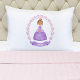 A cute brown hair princess in a purple sparkly dress decorates this pillowcase. Personalise it with your girls name. Makes a cute birthday party favour or gift. Designed for you by Blackberry Boulevard.
