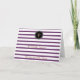 A card with purple lines, stripes placed on white surface with personalised doted circle in black. It is customised with your initial and name. There are many striped thank you cards in other colours too in the same style.