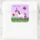 Personalised Purple Unicorn, Flowers and Butterfly Square Sticker