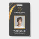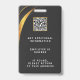 Modern black and gold badge design features your business logo and custom QR code on the back. Add employee name, company name/title, logo (photo or other graphic) and contact information. You can customise the text size, font and colour to suit your own personal preference. Input a URL address to create a scannable QR code linked to your website, social media profiles, or any other platform.