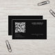 A Personalised QR Code Modern Custom Design Business Card In Black. Customise this business card with your own QR Code, company logo (resize and adjust in edit area), name and tagline/text.