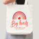 Show your love and appreciation with our Rainbow Personalised Teacher Appreciation Quote Tote bag, with the saying "Big Hearts teach little minds", a rainbow, and a cute apple. This tote bag is a unique gift for Teacher Appreciation Day.