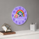 Super Cute Personalised Rainbow Clock in YOUR COLORS and YOUR NAME or TEXT. Type in Your Name or Text in the template text box on your right or delete it. You or Designer Linda can Change the purple background and the white text to your rainbow theme decor COLORS or just Call me, Linda, and I will HELP you or I will make Changes for you: 239-949-9090.