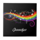 Personalised Rainbow White Music Notes on Black Ceramic Tile