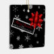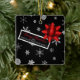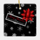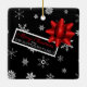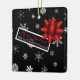 This cute square ornament looks like a festive wrapped Christmas gift! It features the trendy Christmas colours black, red and white. Falling white snowflakes on a black background simulate the wrapping paper and it's adorned with pretty, realistic looking red star shaped bow and a Christmas tag that can easily be personalised. This cute ornament will make a fun gift for family and friends!