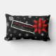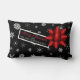 This cute Lumbar Pillow looks like a festive wrapped Christmas gift! It features the trendy Christmas colours black, red and white. Falling white snowflakes on a black background simulate the wrapping paper and it's topped off with a pretty, realistic looking red star shaped bow and a Christmas tag that can easily be personalised. This festive pillow will be the perfect addition to your home this holiday season.