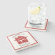 A stylish NEW HOME stone coaster, designed as a realtor-to-client closing gift. ALL TEXT IS FULLY CUSTOMIZABLE so you can personalise the wording to suit your corporate branding. The text reads CONGRATULATIONS, BLESSINGS ON YOUR NEW HOME with Joshua 24:15 Bible verse - As for me and my house, we will serve the Lord. The image shows a RED house with white typography. The O of HOME is replaced with a key. At the bottom, you can add your name and company name, or personal message to your client (up to three lines recommended). Matching items available so you can create corporate gift sets for your clients. Other colours available.