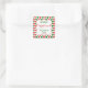 Modern red and green Christmas triangle patterned square sticker. The design features and alternating red and green triangle pattern, a white shape in the middle with the text "Merry Christmas", the family name and the year.
