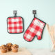 Personalised Red And White Vichy Pattern Oven Mitt & Pot Holder Set