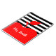 Stem, leaf and top of an apple shape in red against a black and white stripe pattern. This clipboard can be personalised for your favourite teacher. You can change the background colour behind the seamless tile pattern. You can customise the text colour to create a unique, custom gift for a back-to-school gift for the classroom or Teacher Appreciation Week. Transfer your personal design to a planner or binder to create a custom gift for your favourite teacher. The polka dots can be tiled onto larger products.