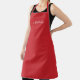 Personalised name flame scarlet apron. Basic red apron with a beautiful white calligraphy script name printed across the chest. Simple minimalist design combines the trendy flame scarlet shade of red and pretty cursive script creating a simple yet elegant accessory. Personalise it by editing the sample name and replacing it with your own or custom name of your choice.