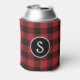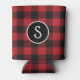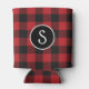Personalised Red & Black Buffalo Plaid Monogram Can Cooler