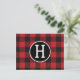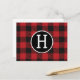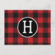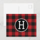 Personalised Red & Black Buffalo Plaid Monogram Postcard