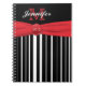 This monogrammed red, black, and white stripes notebook has template boxes for you to add your name, monogram, year, or other text. If you need help customising this item, please email niteowlstudio@gmail.com for assistance.