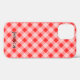 Personalised red gingham plaid pattern iPhone 12 case. Customisable background colour and check size. Chequered print design. Rustic style.