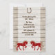 ~Personalised red and brown silhouette horse with brown horseshoe on a barn wood background birthday party invitation. This invitations is perfect for both girls and boys.