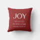 Personalise the front of this cranberry red pillow for your own home with this Joy Abounds in our Home text in elegant typography and colour. Add your family name and year or other text to the bottom line. The design is the same on the front and the back.