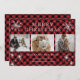 Personalised Red Plaid Snowflake 3 Photo Collage Holiday Card
